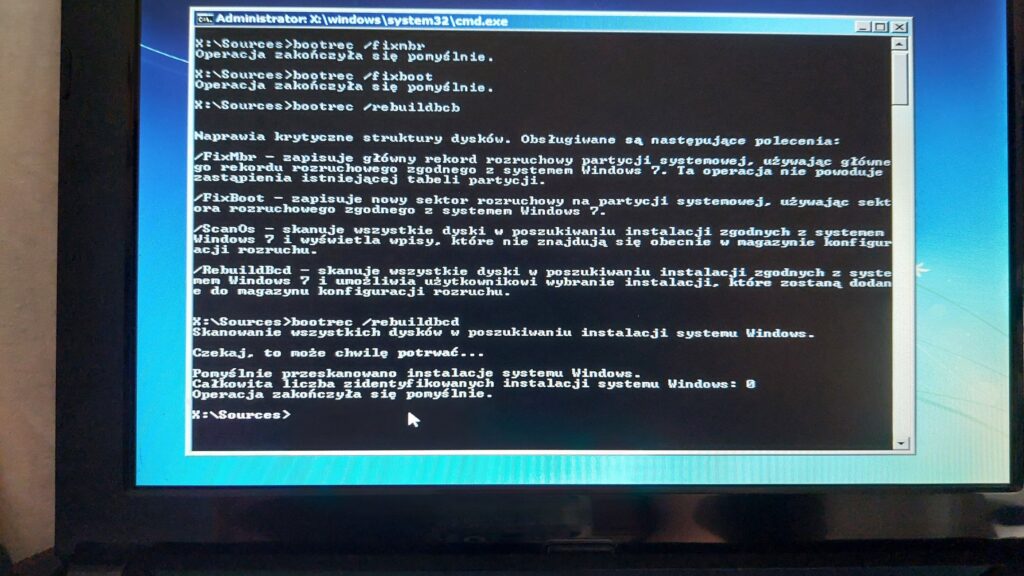 Uruchomienie laptopa z pendrive z Win7 i finalna naprawa